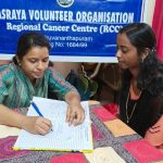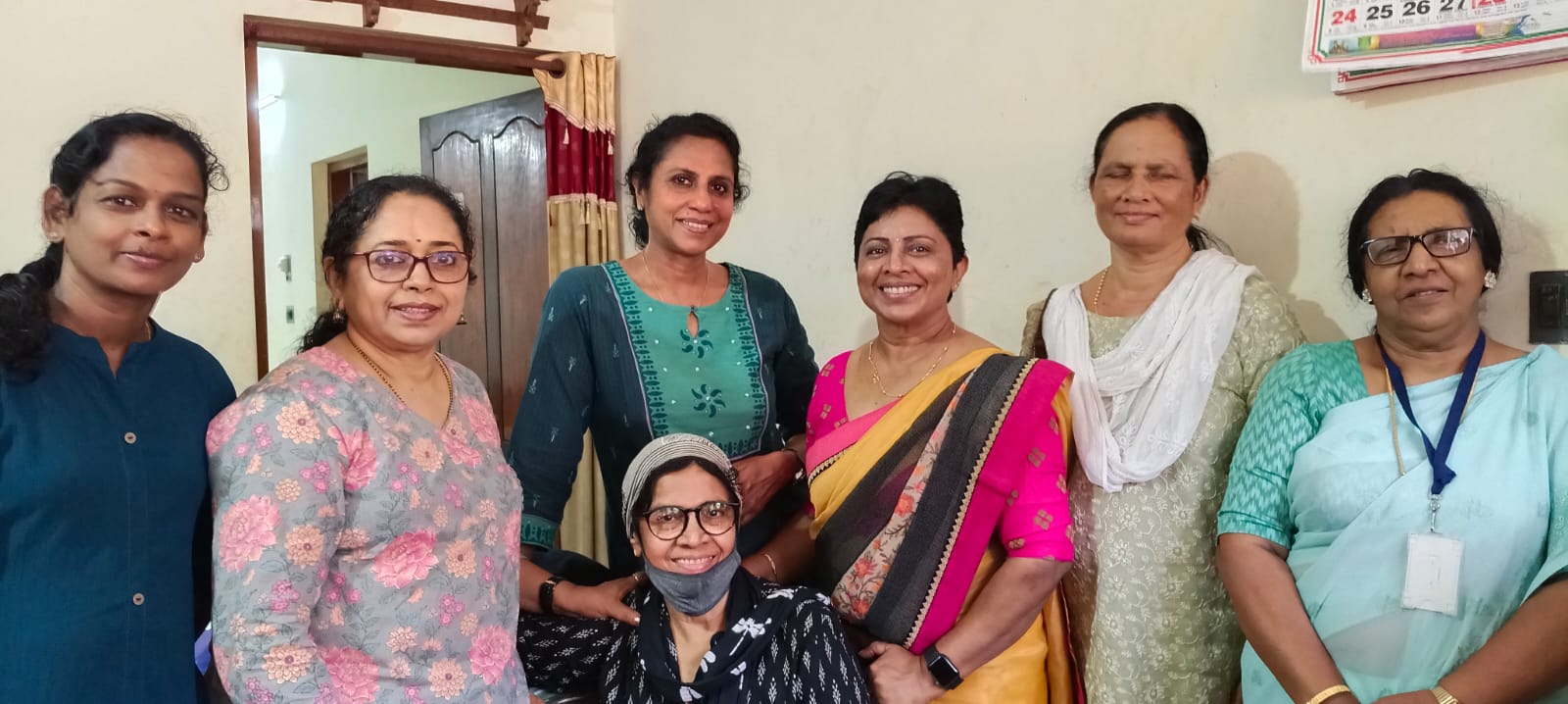 The children of St. Thomas School handing over their cheque to Asraya for helping Cancer patients in RCC